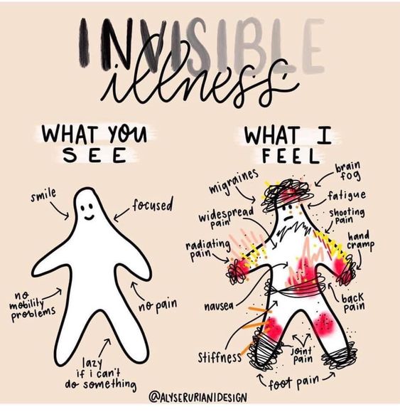 That type of invisibility is all too common. Many people with dangerous illnesses have died waiting for doctors to take them seriously. Fibro doesn’t kill, but there are hundreds of illnesses that can and do kill people while doctors wait for them to “lose a little weight” before they do any tests. This type of invisibility is literally killing people, women and people of color more than others. These are serious issues that need to be addressed. But the invisibility trap doesn’t stop with a diagnosis.
